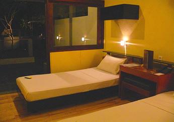 JavaCove Beach Hotel is located across the road from a tree-lined beach bordered by jungle covered headlands.